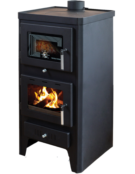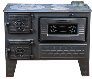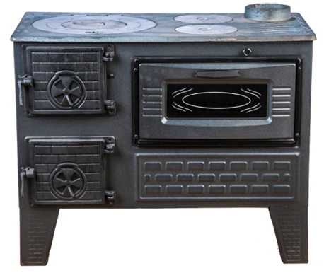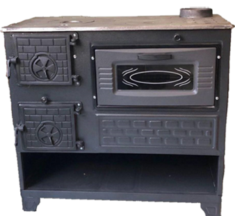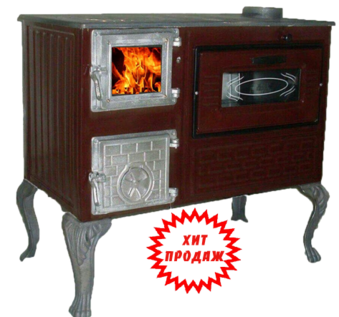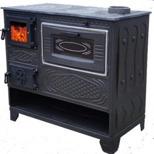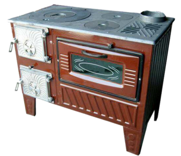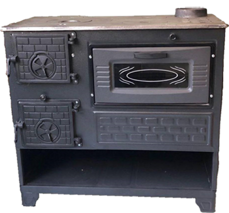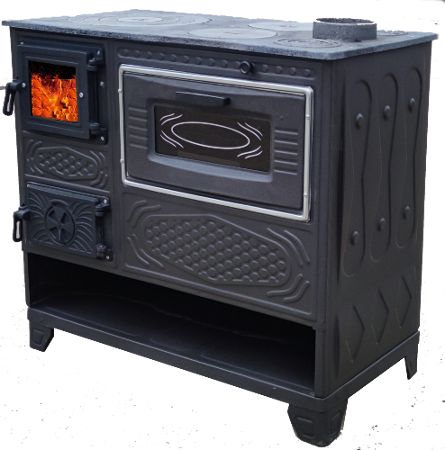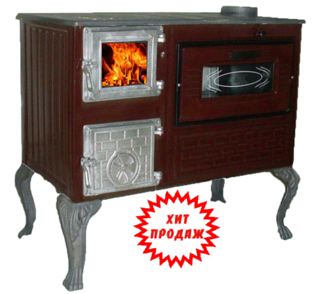 Дверцы топки и духового шкафа - жаропрочная стеклокерамика.